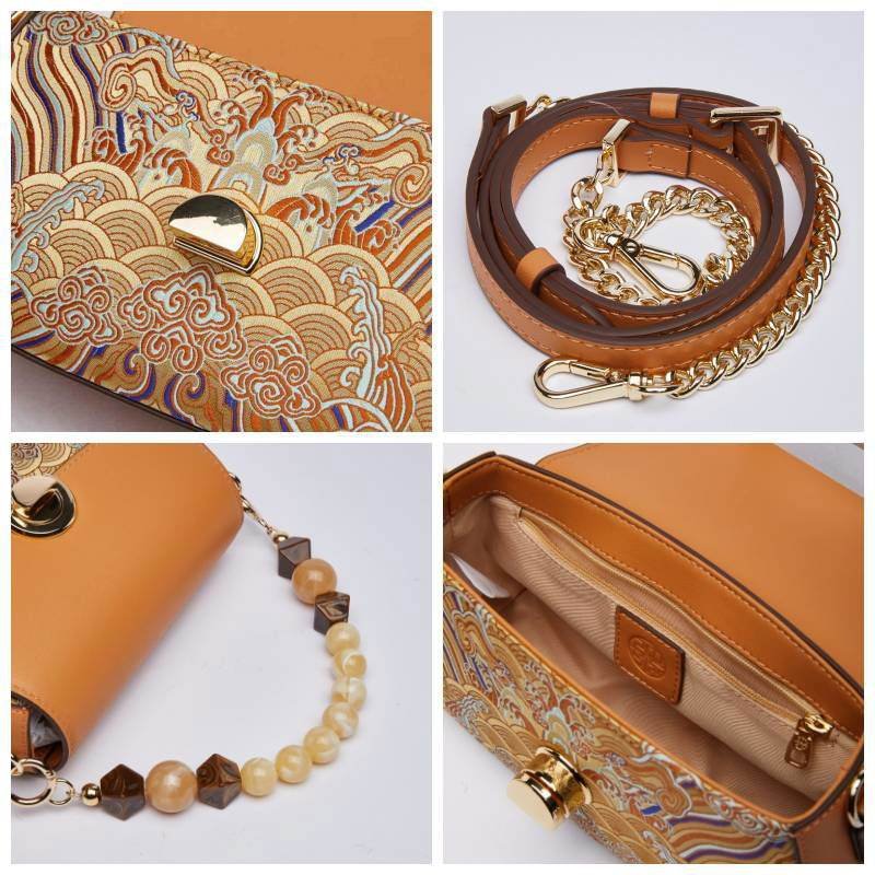 Brocade Mulberry Silk Brown Chain Mini Women Clutch Handbag