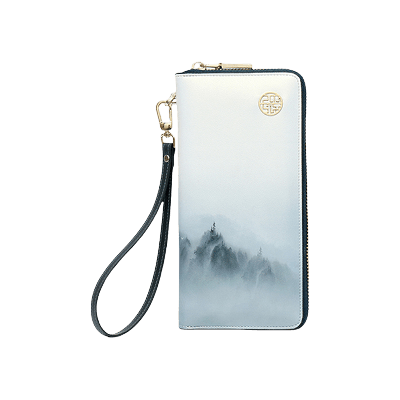 Chinese Style Cloud Mountain Blue Printed Cowhide Wallet