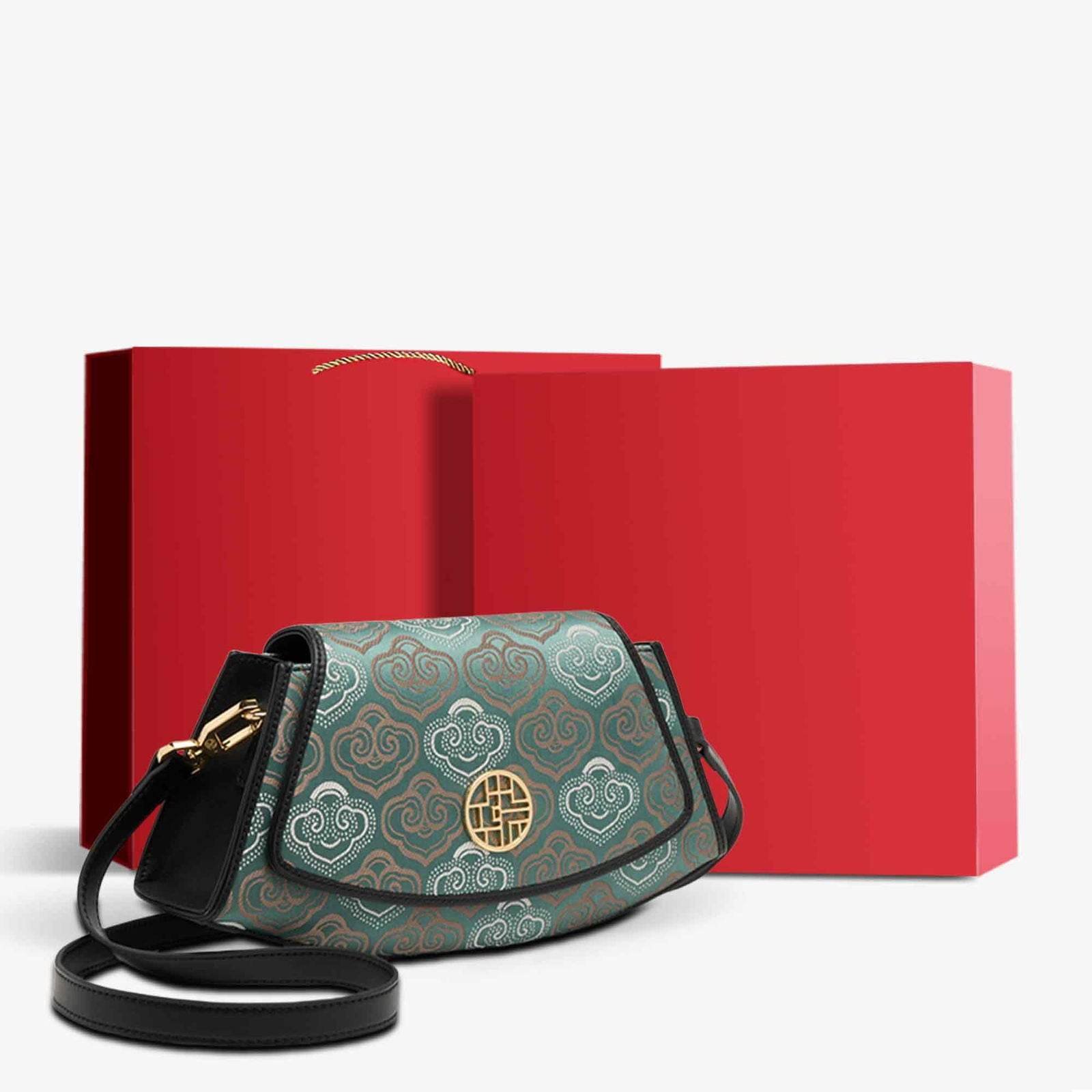 Embroidery Leather Single Shoulder Underarm Bag Auspicious Cloud