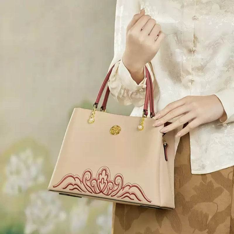 Embroidery Genuine Leather Elegant Crossbody Bag Veined Pattern