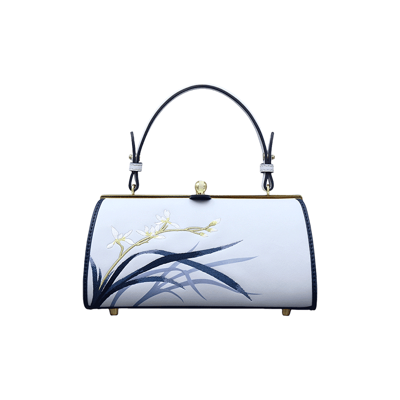 Be the first to review “Embroidery Leather Blue Kiss Lock Bag Orchid Cylinder Chain Handbag”