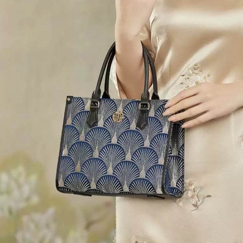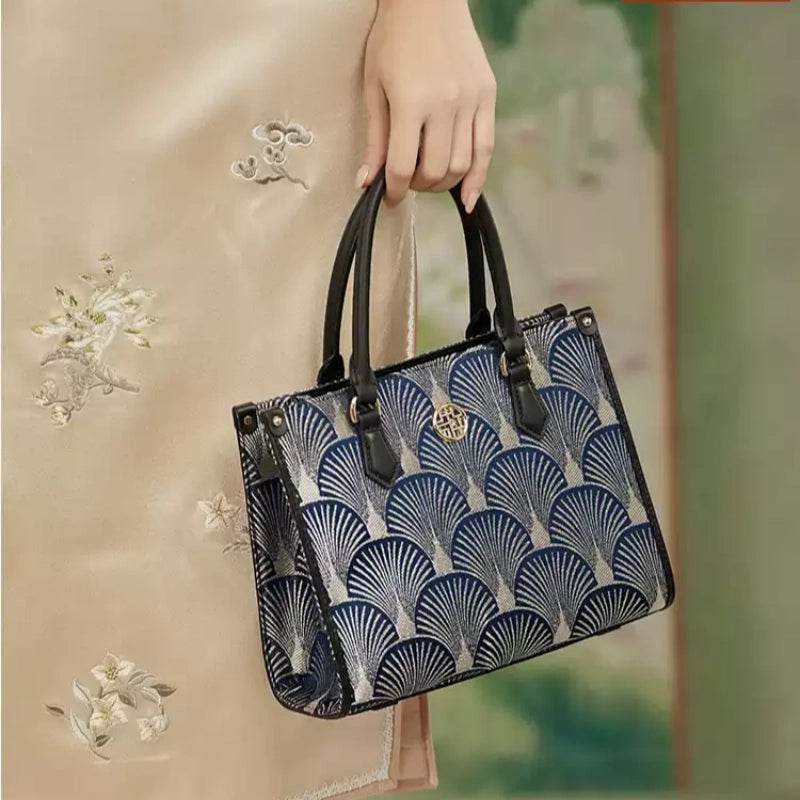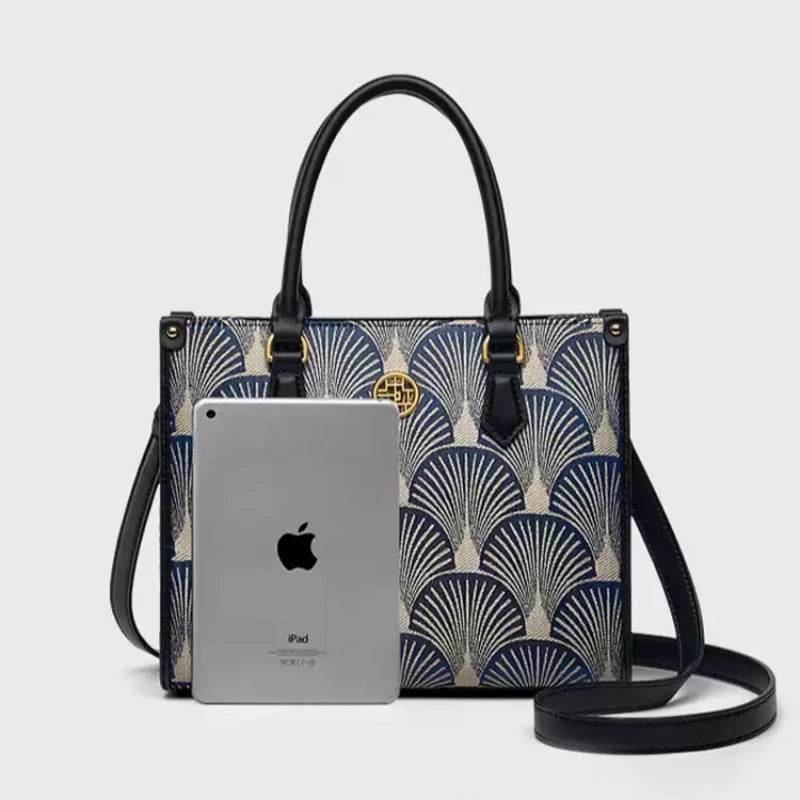 Embroidery Leather Elegant Commute Crossbody Tote Bag