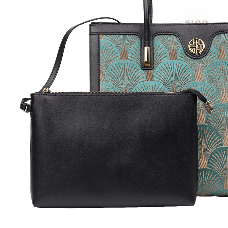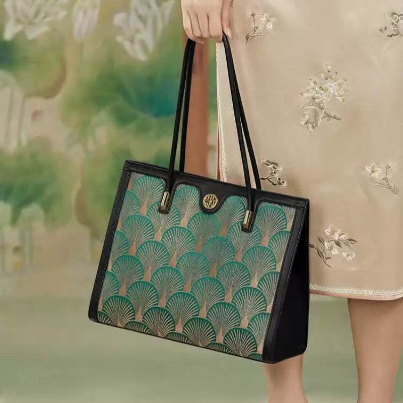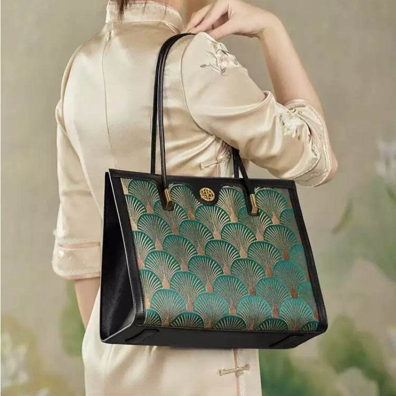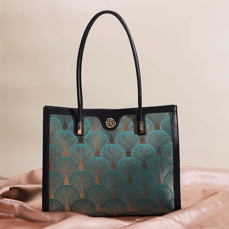 Embroidery Leather Elegant Single Shoulder Tote Bag with a Pocket