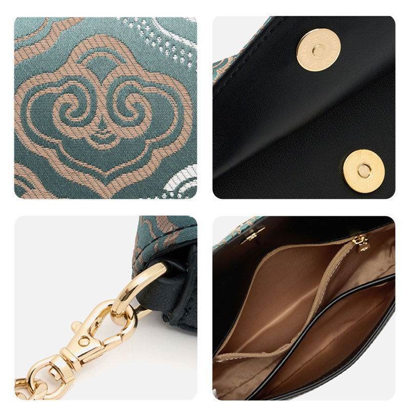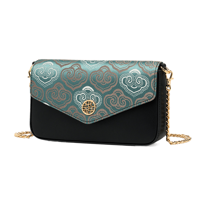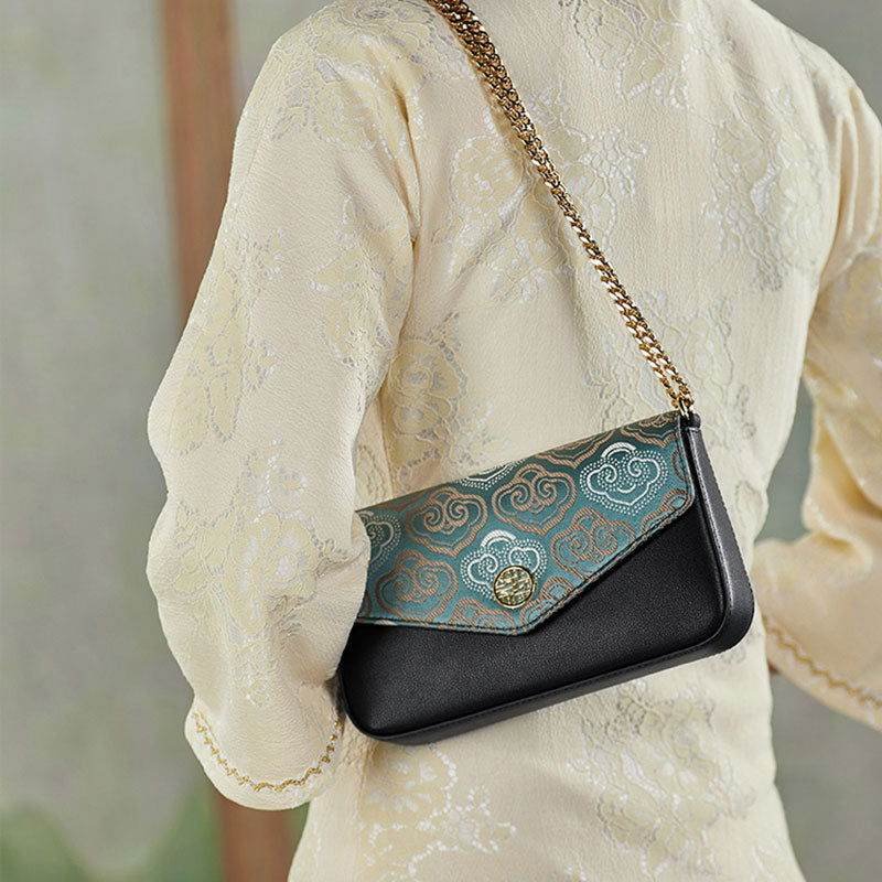 Embroidery Leather Flap Clutch Bag Auspicious Clouds Handbag