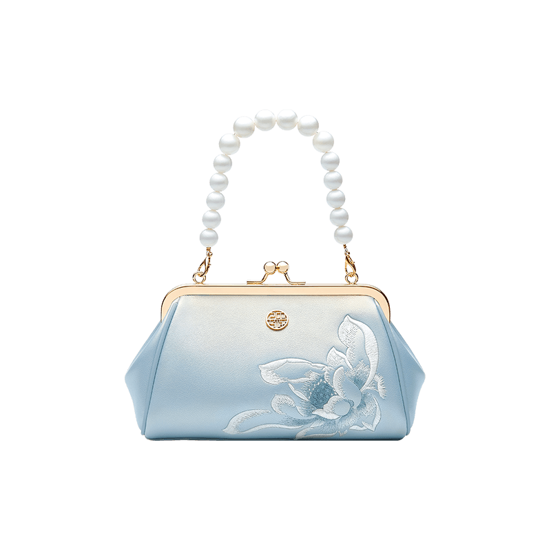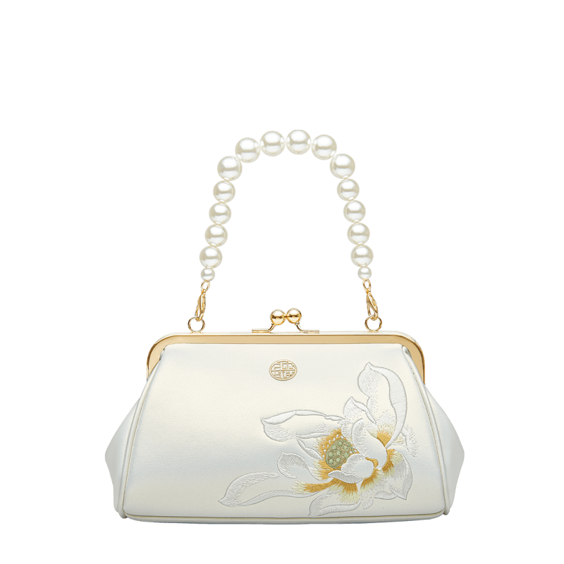 Embroidery Leather Kiss Lock Clutch Bag Lotus Evening Handbag