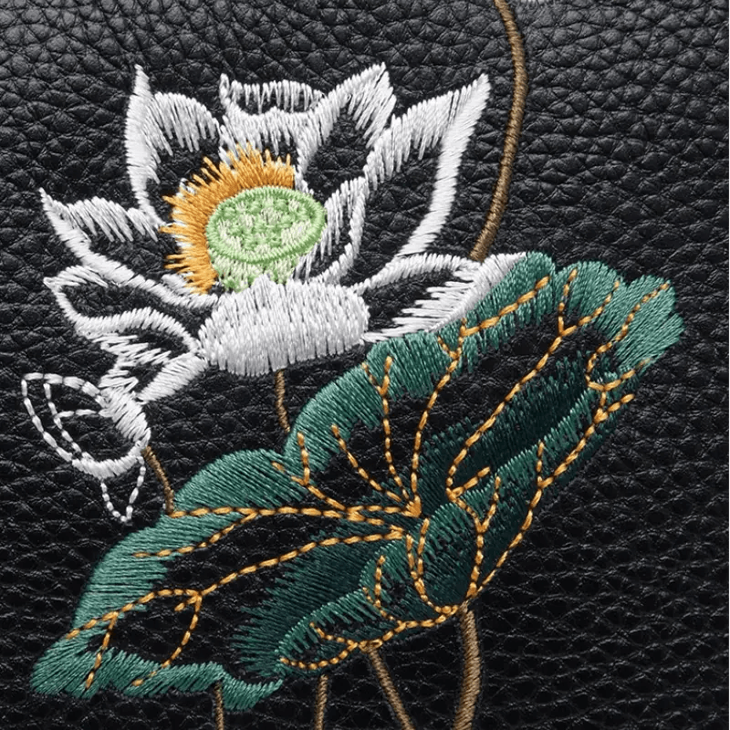 Embroidery Leather Shoulder Bag Black Lotus Handbag