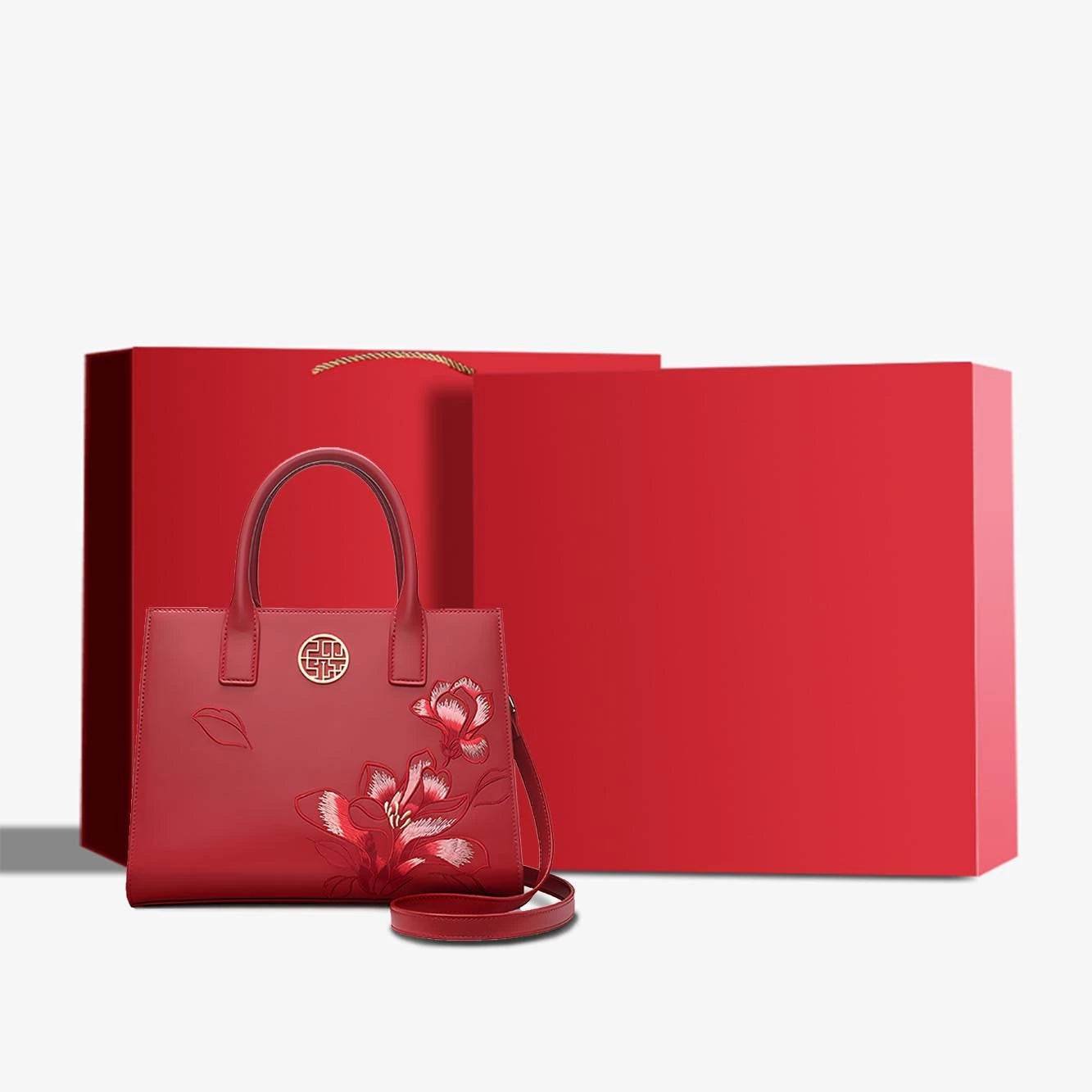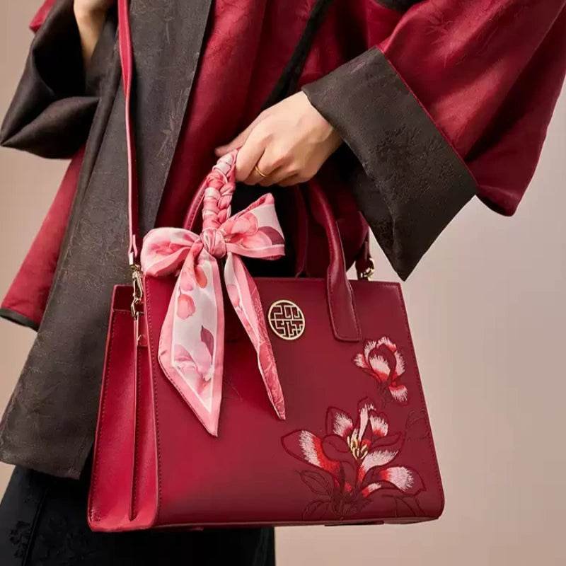 Be the first to review “Embroidery Leather White Commuting Handbag Orchid with Scarf”