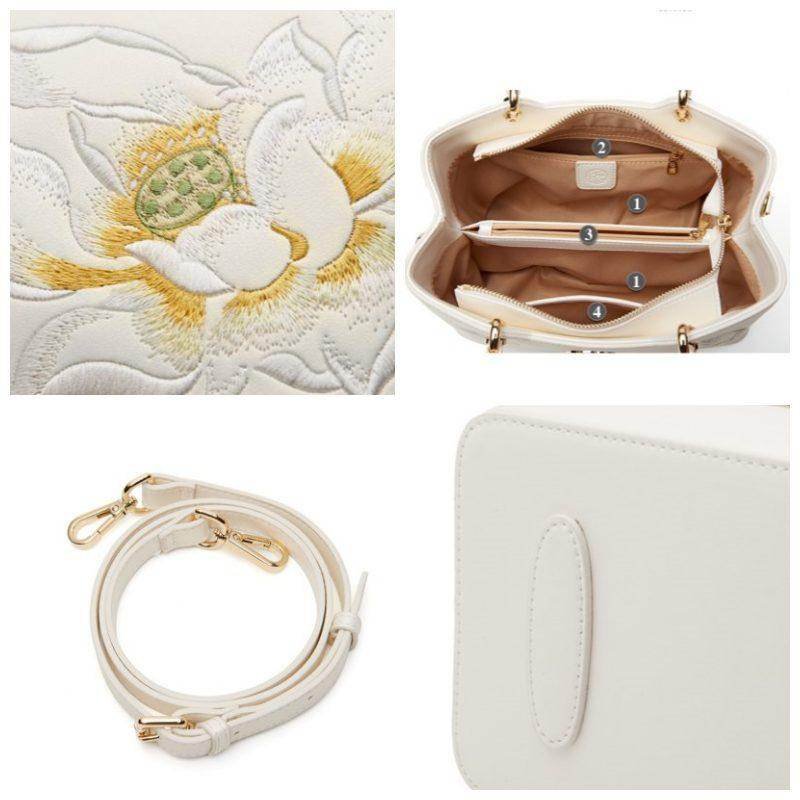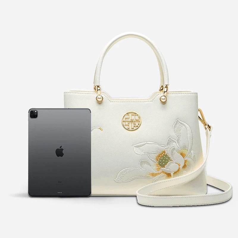 Embroidery Leather White Crossbody Tote Bag Lotus Luxury Gift