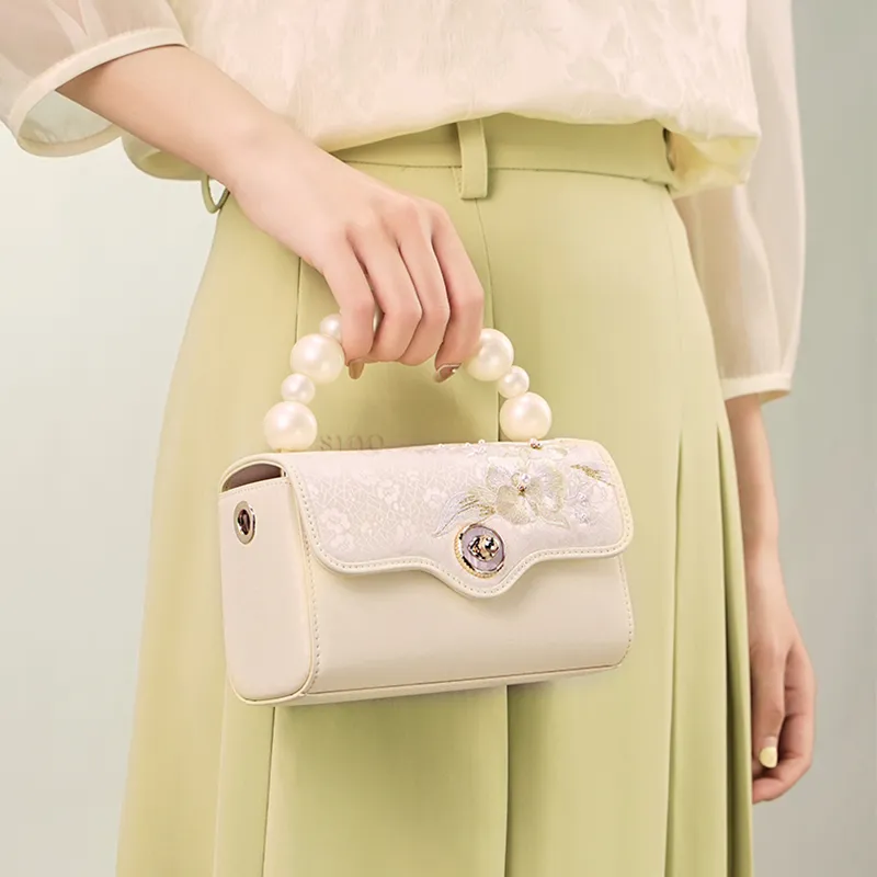 Luxury Orchid Butterfly Design Embroidered Silk Handbag