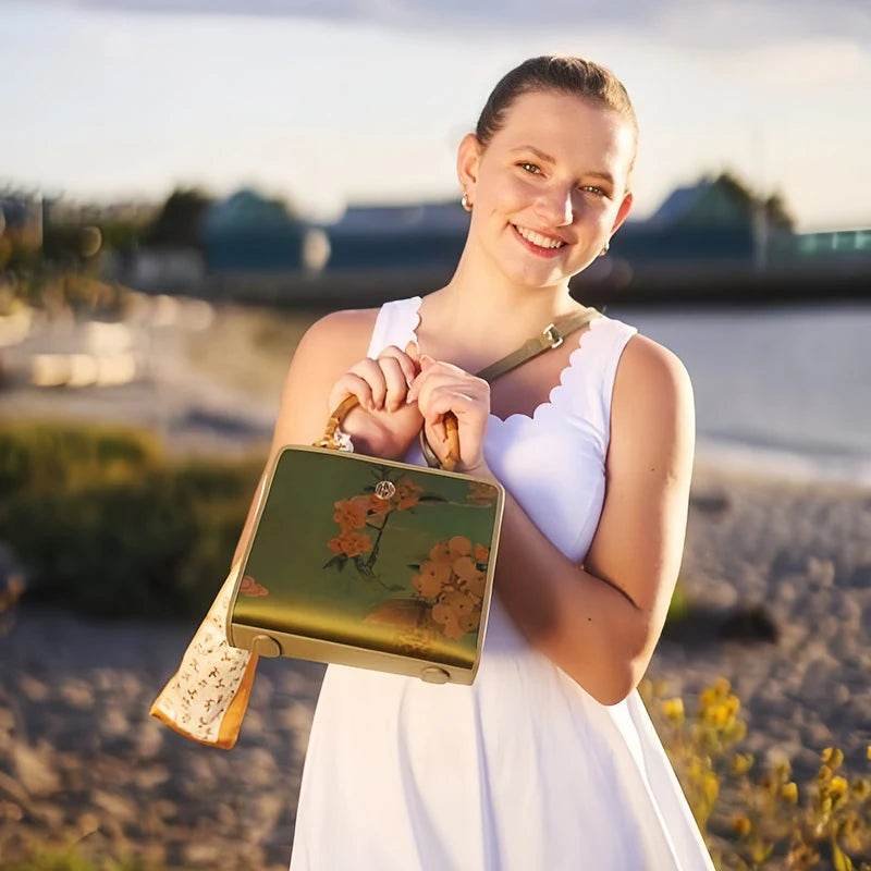 Mulberry Silk Bamboo Handle Green Square Handbag with Scarf
