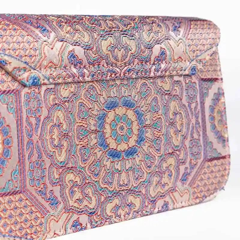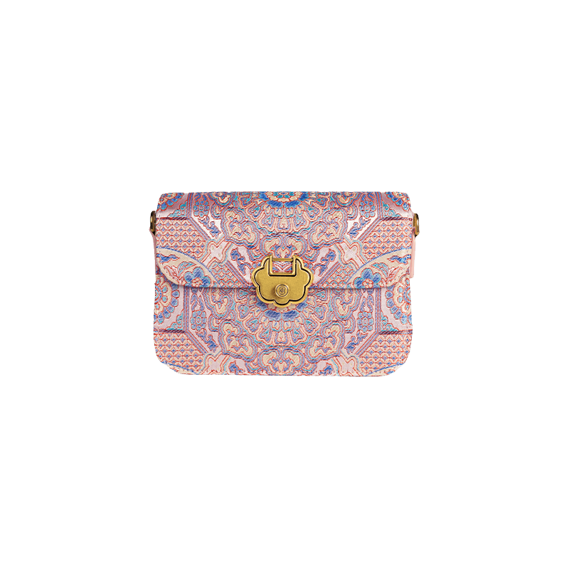 Song Brocade Leather Luxurious Powder Pink Clutch Handbag