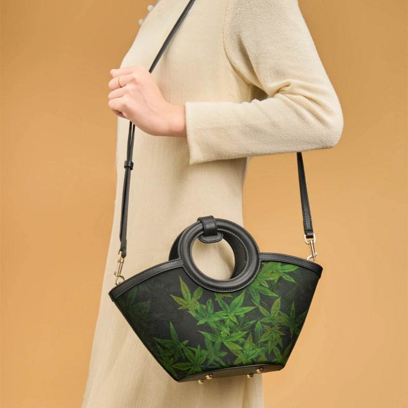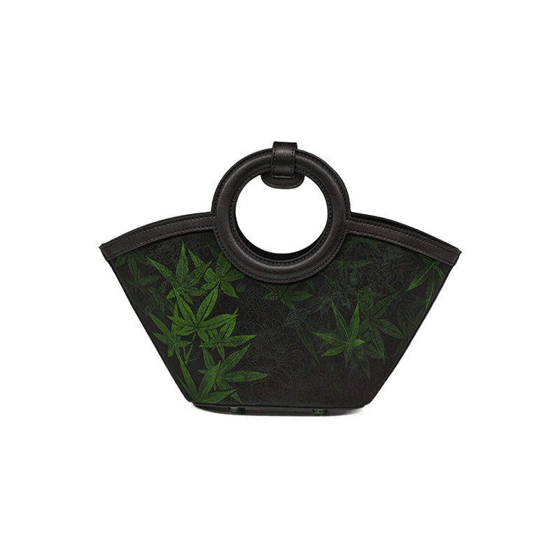 Xiangyunsha Silk Black Maple Leaves Basket Bag