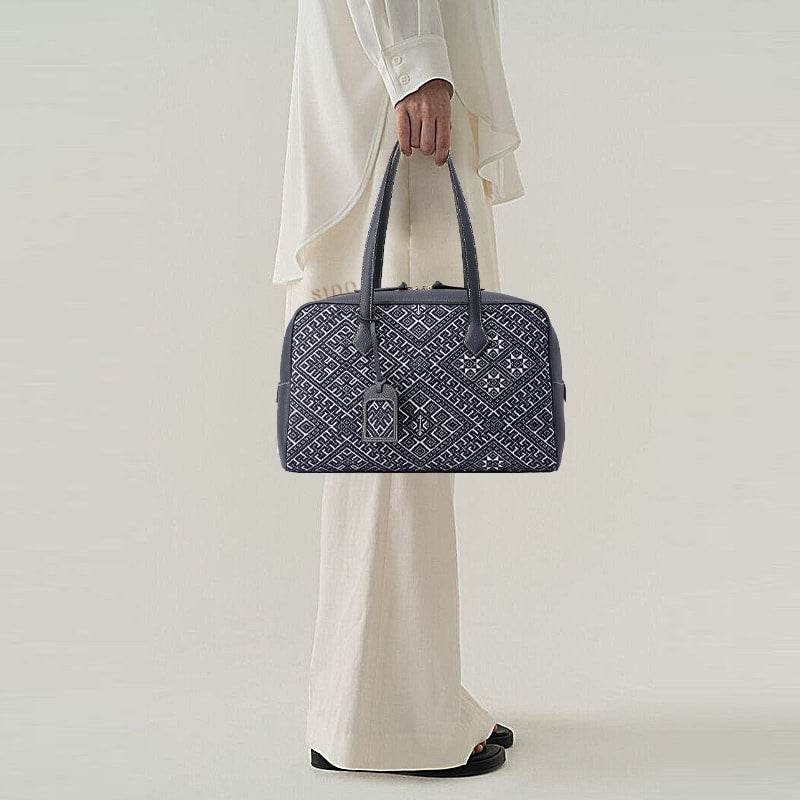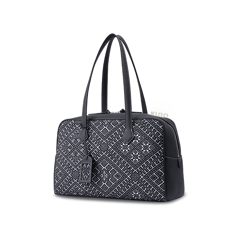 Zhuang Brocade Flying Swallow Motif Embroidered Leather Handbag
