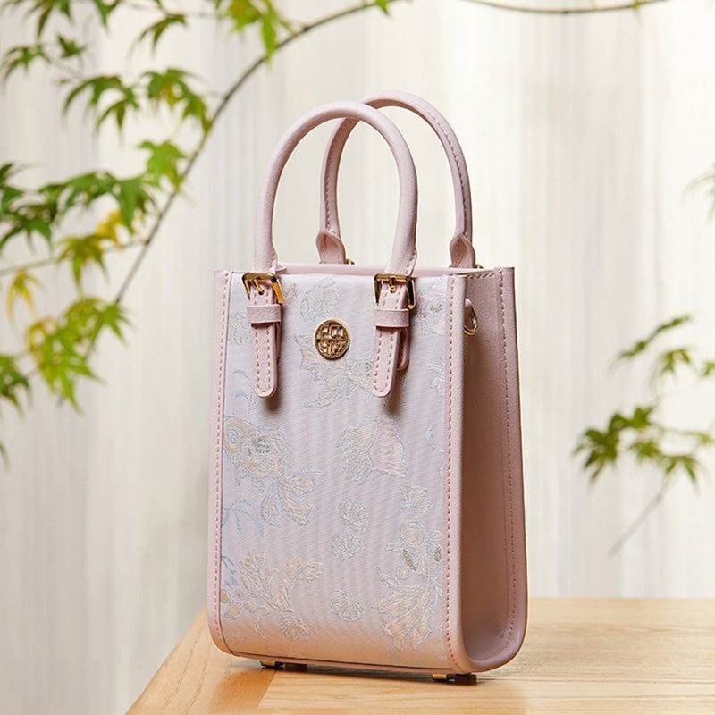 Brocade Jacquard Mulberry Silk Pink Women Floral Handbag