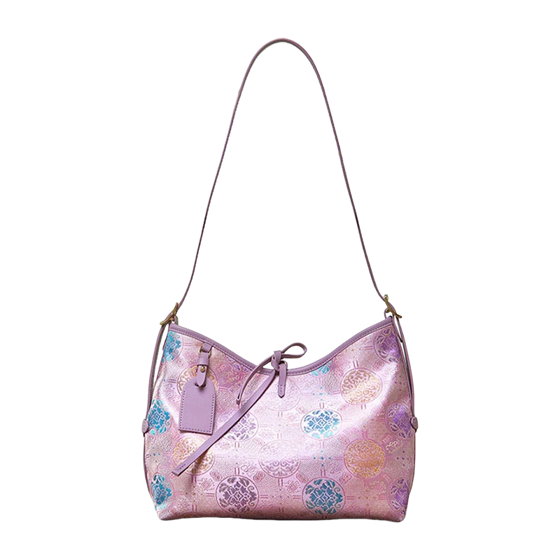 Handcraft Brocade Jacquard Purple”Tuanhua”Chinoiserie Royal Tote Bag