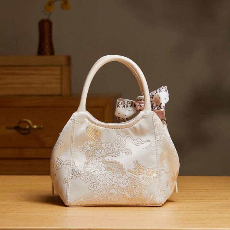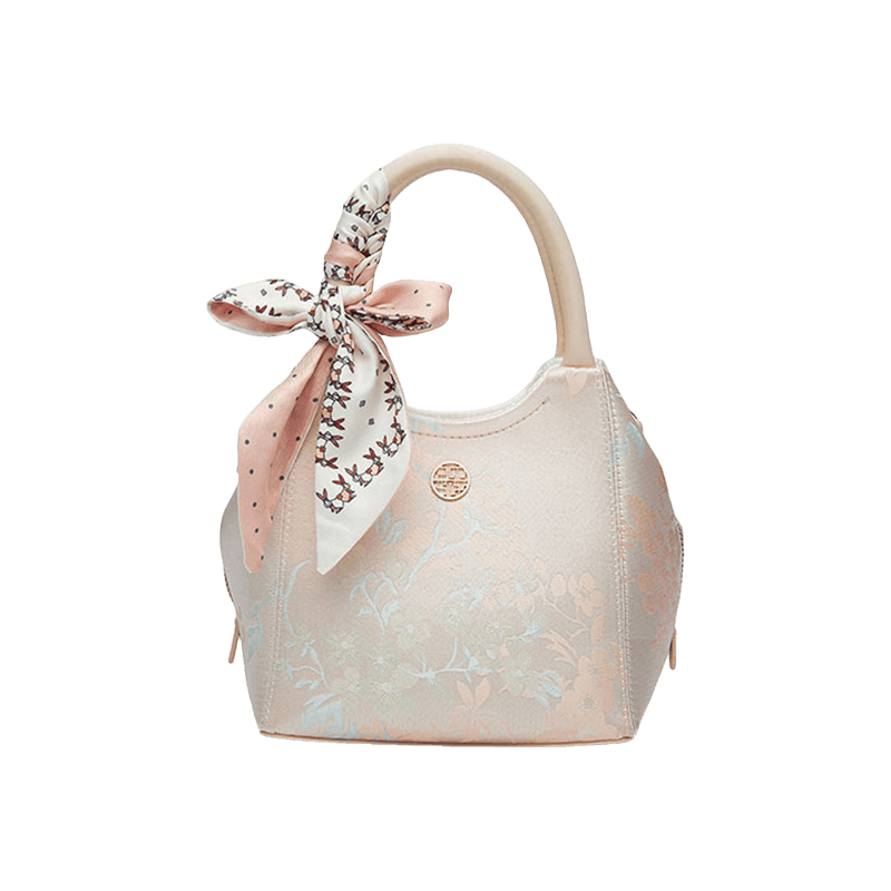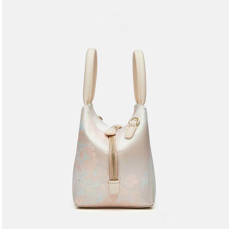 Brocade Silk Cute Pink Floral Bucket Bag Designer Handbag