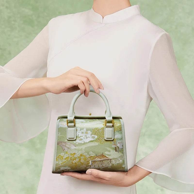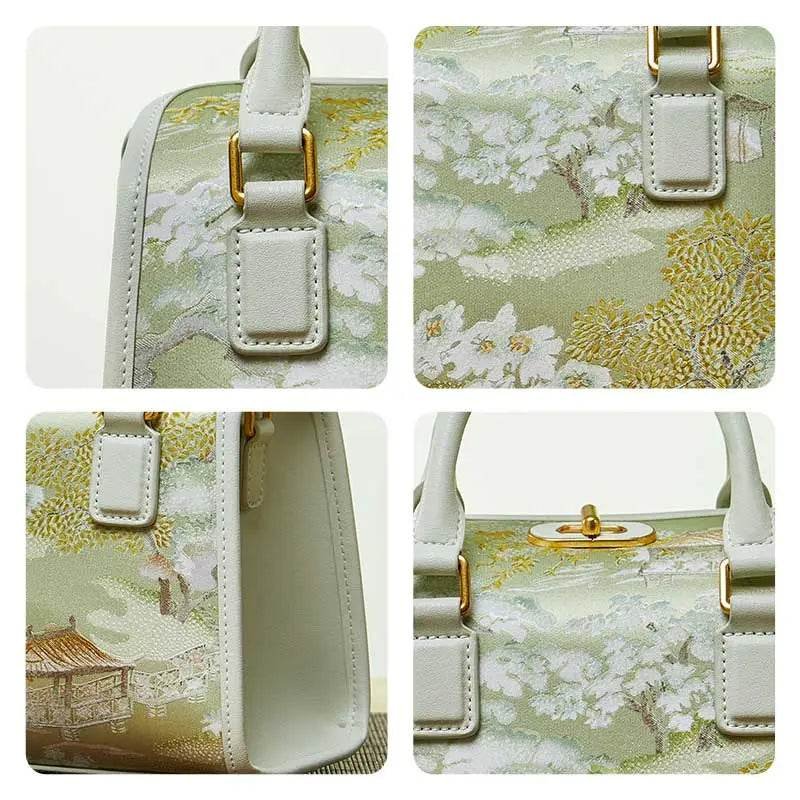 Chinese Painting Mulberry Silk Boston Bag Luxury Handbag
