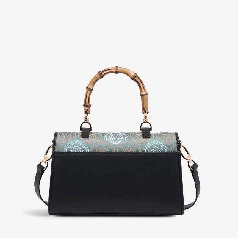 Embroidery Leather Bag Zhuang Brocade Bamboo Handle Handbag