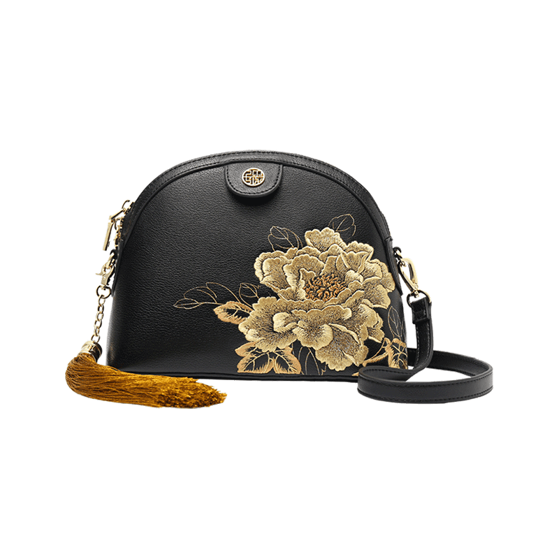 Be the first to review “Embroidery Leather Shoulder Bag High Luxury Royal Gold Peony”