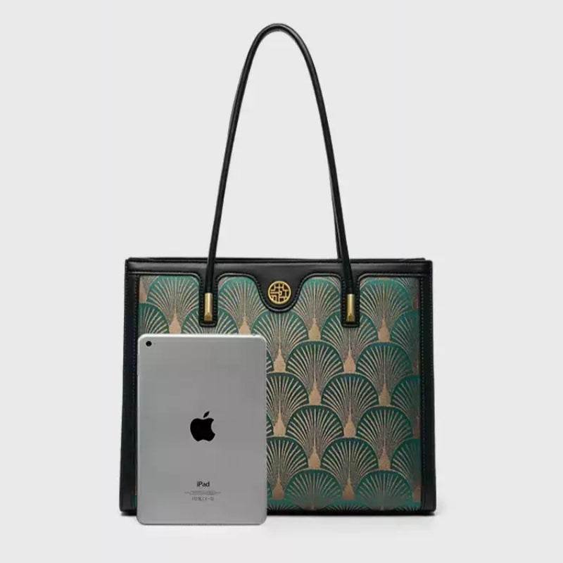 Embroidery Leather Elegant Single Shoulder Tote Bag with a Pocket