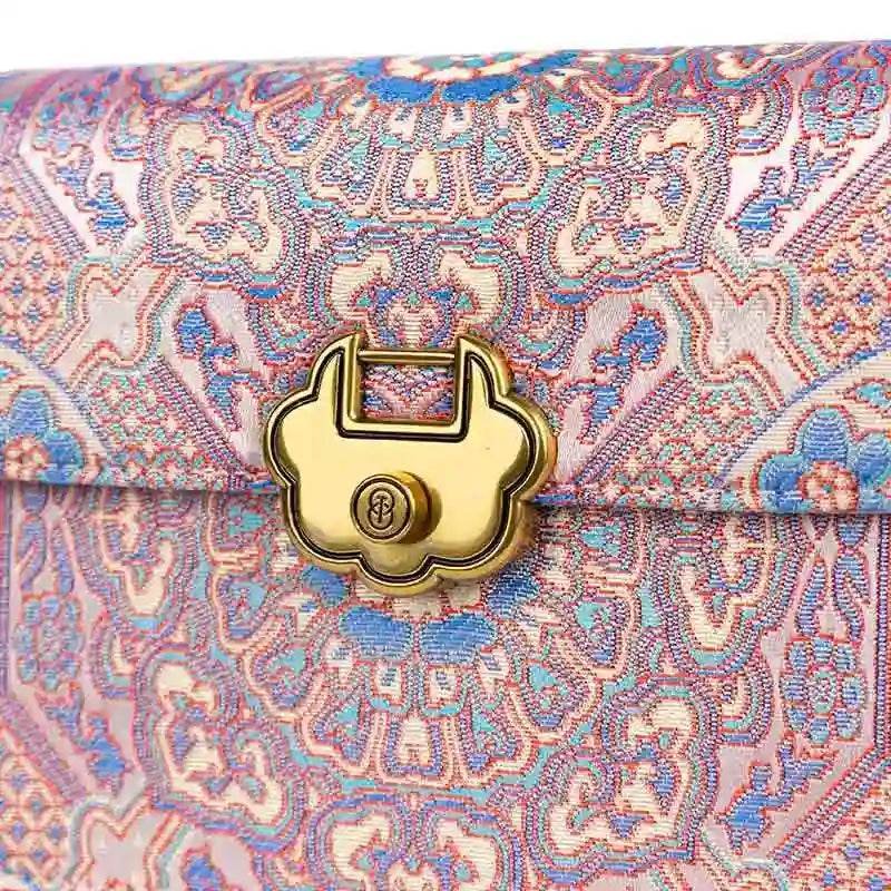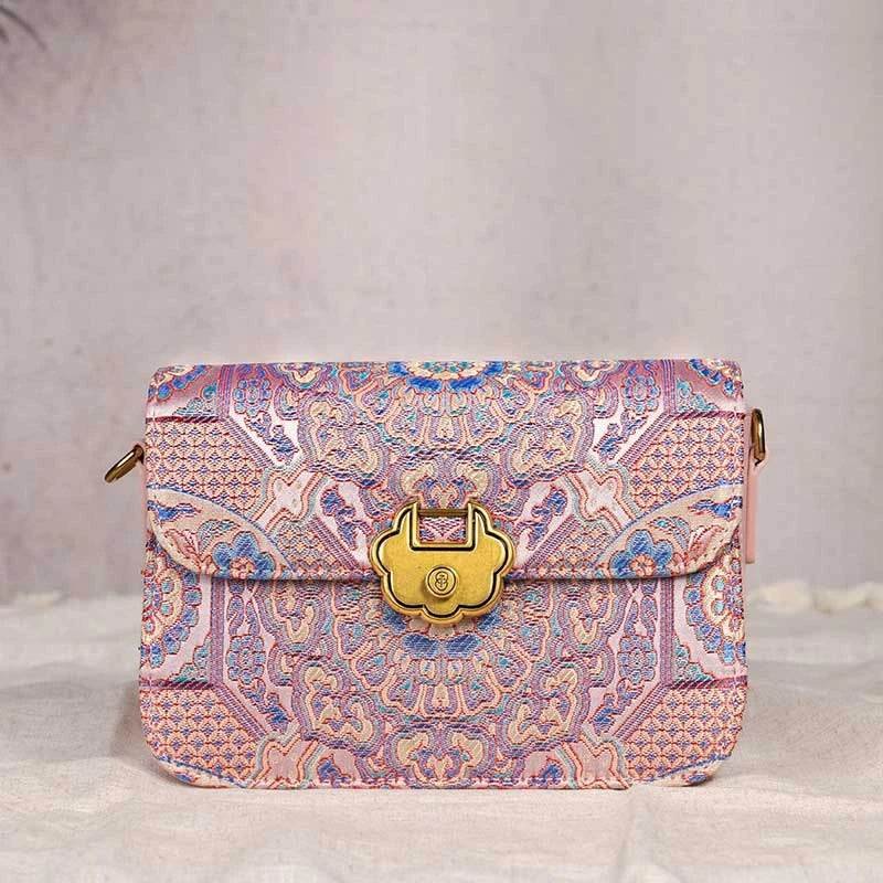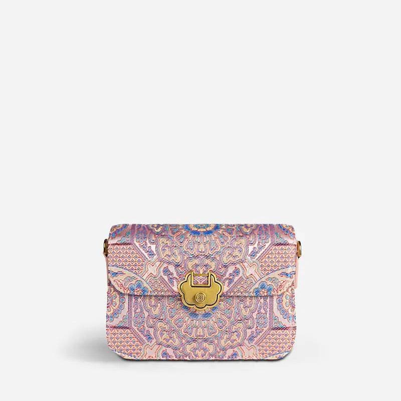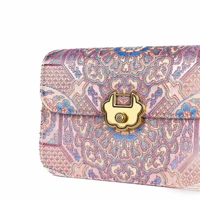 Song Brocade Leather Luxurious Powder Pink Clutch Handbag