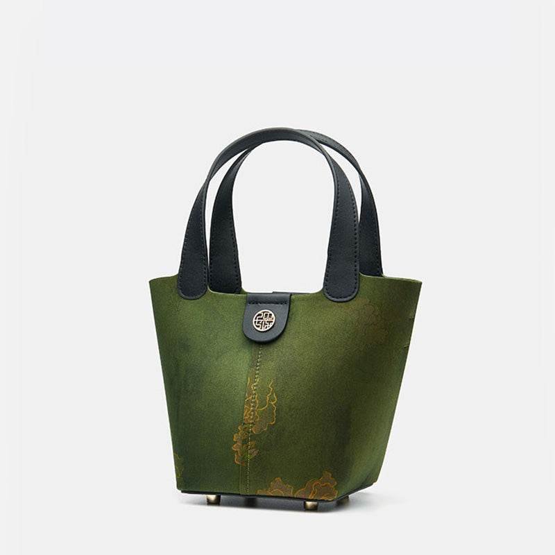 Be the first to review “Xiangyunsha Silk Dark Green Bucket Bag with Scarf”